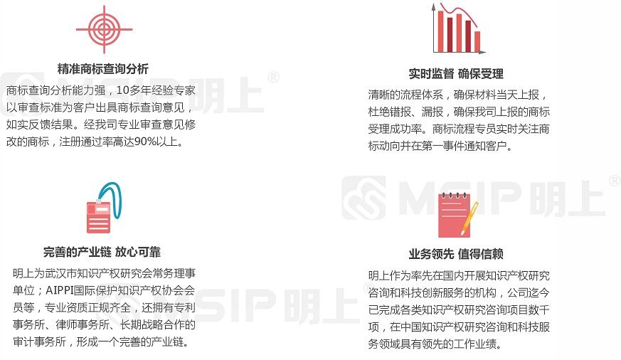 1、專業(yè)知識產(chǎn)權背景 明上利用自己專業(yè)化的知識產(chǎn)權背景,為企業(yè)知識產(chǎn)權領域業(yè)務提供專業(yè)解決、代理申報服務并完善申報工作中關于企業(yè)自主知識產(chǎn)權的專業(yè)問題。