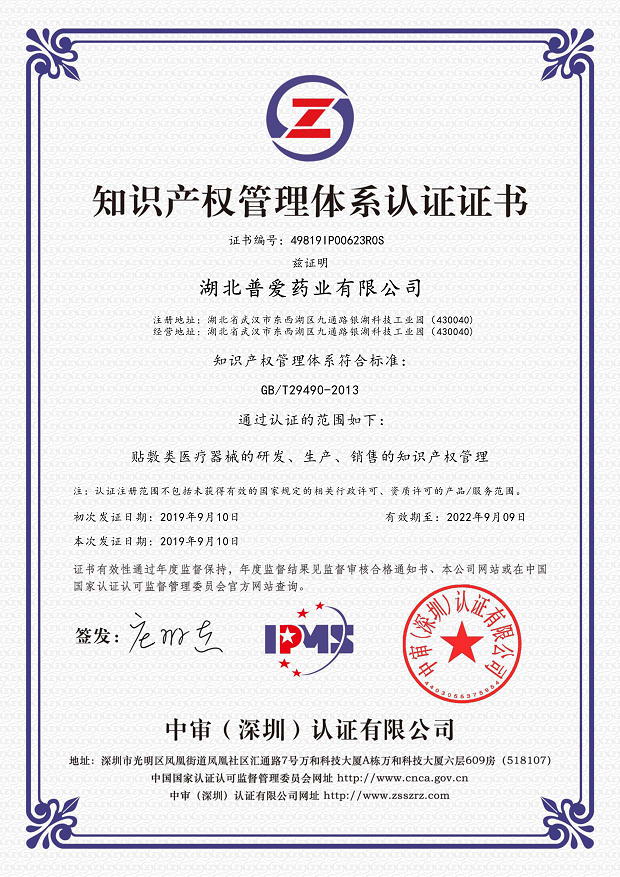 熱烈祝賀湖北普愛藥業(yè)有限公司于2019年9月獲得知識產(chǎn)權貫標認證證書,這意味著湖北普愛藥業(yè)有限公司在知識產(chǎn)權領域獲得到重要認可,在知識產(chǎn)權方面得到進一步規(guī)范和在綜合競爭力得到進一步提升。