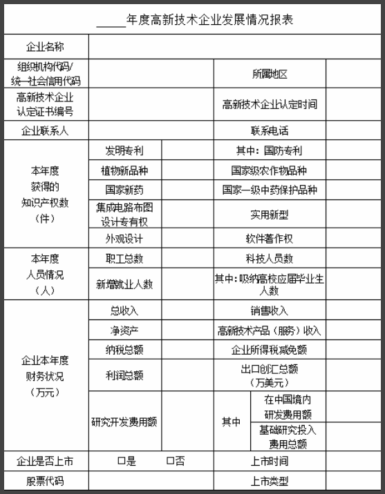 高新年報(bào)發(fā)展情況報(bào)表填寫(xiě)